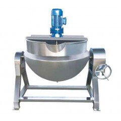 夾層鍋又名蒸汽鍋、蒸煮鍋、夾層蒸汽鍋,通常由鍋體和支腳組成。 鍋體是由內(nèi)外球形鍋體組成的雙層結(jié)構(gòu)形式,中間夾層通入蒸汽加熱,有固定式、可傾式等樣式。夾層鍋已蒸氣為源,具有受熱面積大、熱效率高、加熱均勻、加熱時間短且溫度容易控制,物料攪拌形式采用刮底、刮邊、不粘鍋、無攪拌死角、攪拌均勻;鍋體內(nèi)外殼均為不銹鋼材料制造,符合衛(wèi)生安全要求、附件齊全、外形美觀、安裝及操作簡單方便、安全可靠。