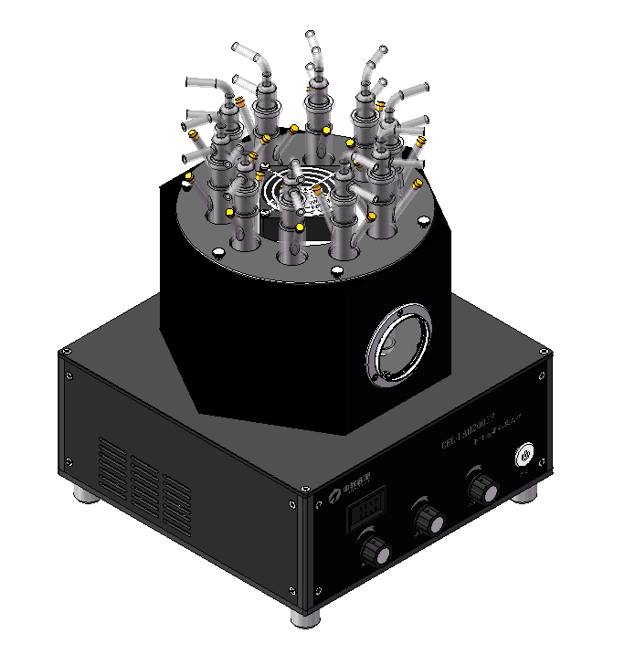 (2)石英反應管,100ml(CEL-QRT100),50ml(CEL-QRT50); (3)專用防護箱體,LB70(400*400*700mm); (4)CEL-GDT12氣體分配儀,用于鼓泡充氣、抽取真空等功能。 |
