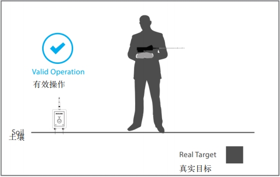 ,用戶必須將中間天線彎向地面。確保對目標有多個讀數。開始以相同的方向走正常的裝置。直到你 到達通過點,你會注意到設備圍繞正常軌道旋轉。緩慢地旋轉設備并緩慢開始向目標方向行走,直到您到達設備左右旋轉的位置,然后找到目標點。