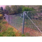 被動防護網,即形式上與標準主動防護系統相似,但發揮的主要是被動防護作用。其與起加固作用的標準主動系統的主要差別在于無需進行系統錨固和預張拉來確保系統盡可能的緊貼坡面,僅通過周邊和內側局部錨固將柔性網系統自然覆蓋(披掛)于坡面,甚至可僅采用上沿錨固和上沿支撐繩作為懸掛支承,形成簡單的“窗簾”式結構。既憑借系統自重覆壓作用給潛在崩塌滑落體提供 定的穩定加固作用,部分限制崩塌的發生,又允許落石在系統與坡面構成的相對封閉空間內有 定限制地順坡滾落,從而使落石在控制條件下順坡安全向下滾落直至坡腳或坡上平臺而不危及安全防護,而不是阻止崩塌的發生,它對崩塌落石發生區域集中、頻率較高或坡面施工作業難度較大的高陡邊坡是 種非常有效而經濟的方法。它與被動防護系統相比的主要優點在于清理工作十分簡便或無需清理,并避免了被動防護系統防護高度設置不足時可能發生的落石飛越,在邊坡高度不太高時,該方法更為經濟,且兩者在 定條件下可配合應用。該系統除主要用作崩塌落石防護外,還可用作爆破飛石防護。