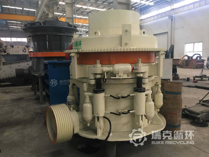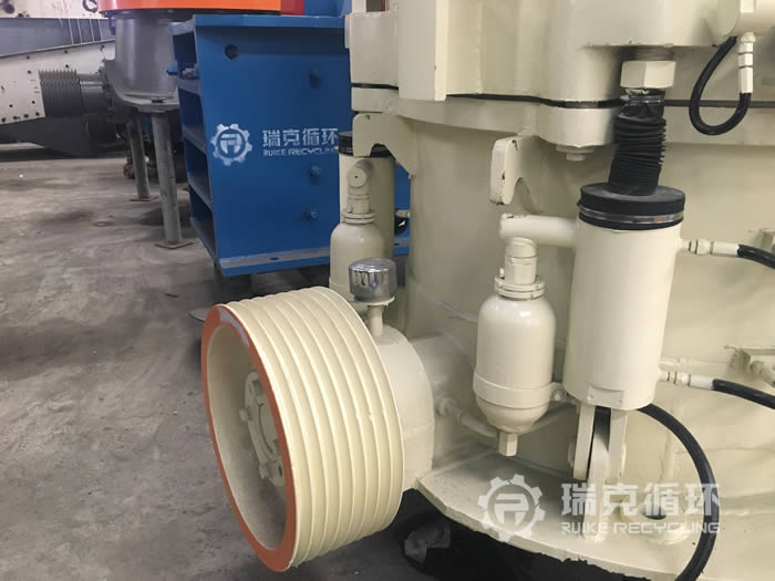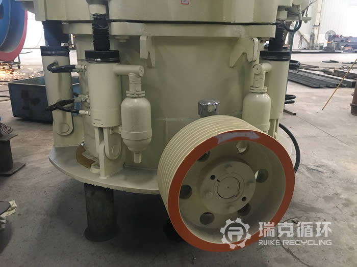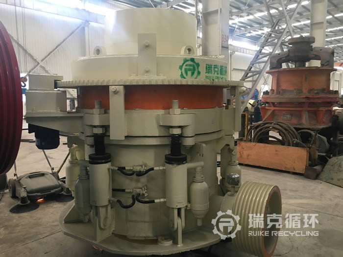 該臺HP200多缸圓錐破碎機是我公司銷售經理在內蒙古回收的,由于受到當地經濟模式調整的影響,該企業將設備裝讓給我公司。在設備現場我公司的銷售和技術人員詳細的檢查了設備的情況,符合我公司回收標準之后將設備拆除運回公司。在我公司車間 對該設備清洗之后拆機檢查,用測量工具仔細檢查每 個零部件,根據檢查結果下發檢修通知,并且將易損件重新更換,完成檢修之后在我公司試機平臺上進行試機,在試機中該設備的各項數據都非常的穩定,生產性能達標之后對該設備進行噴漆。