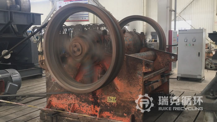 該臺300 ×1300顎式破碎機從集團公司購買之后在河南某地從事青石的破碎工作,在使用產量和性能都比較穩定,由于企業生產工藝改變,這臺顎破滿足不了生產的需要,與我公司聯系置換600×900顎破,根據客戶描述使用只更換了易損件,除此之外沒有其它故障,我公司調取總公司售后記錄在之后,到現場對設備進行檢查,除了外觀有明顯呢的銹跡以外,其它部位保存比較良好,設備運到公司之后將設備清洗、拆機、檢查,依據檢查結果下發檢修方方案,完成檢修之后在我公司司機平臺上進行試機運行,試機中該設備性能穩定,符合出廠標準。
