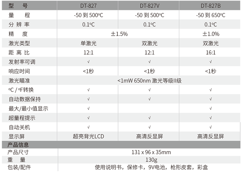 雙激光指示,快速瞄準(zhǔn)和定位被測物體(DT-827V/B)