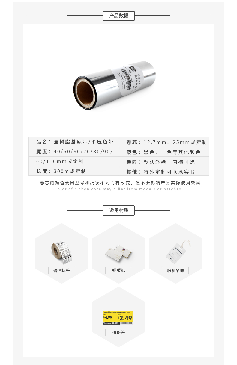 適用于標簽打印、銅版紙打印、布標打印