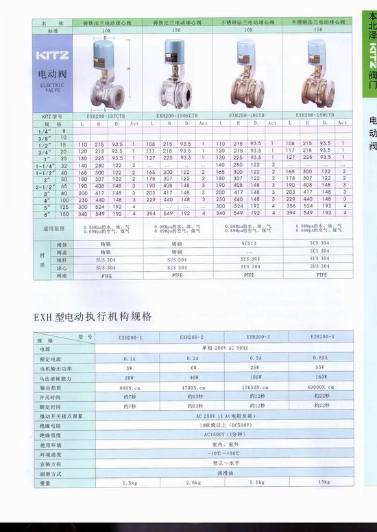 日本北澤KITZ電動球閥是部分旋轉類球閥,旋轉90°即可全關全開,與相同規格的閘閥和截止閥比較,球閥體積小、重量輕、功能強大、可靠性高、便于管道安裝等。密封性能優良,流通能力大,流阻系數小,結構簡單、維修方便、使用壽命長。閥體通道和連接管徑相等并成 直徑,介質幾乎可以毫無損失的流過。產品通常用于密封要求嚴格的場合,除控制氣體、液體、蒸汽介質外,還適宜控制污水和含有纖維性雜質的介質。