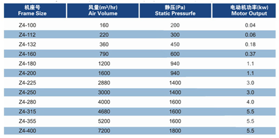 電機的基本冷卻方式為IC06,即自帶鼓風(fēng)機的外通風(fēng);也可以為IC17,即冷卻空氣進口為管道、出口為百葉窗排風(fēng);也可以為IC37,即冷卻空氣進出口均為管道。并有多種派生形式,如自通風(fēng)型、帶軸向風(fēng)機型、封閉型、空/空冷卻器型等。各機座號電動機需冷卻風(fēng)量、風(fēng)壓及風(fēng)機電動機功率等數(shù)據(jù)見表1。整個系列電機的外殼基本防護等 為IP21S。