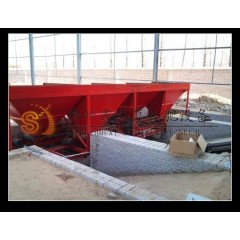 1.皮帶式定量配料機:其結構多為上部是原料儲料斗,下部為計量斗,底部為卸料輸送皮帶,儲料斗用于儲存待配原料,儲料斗底口下方正對配料輸送皮帶。 其原理:配料開始,皮帶機啟動帶出儲料斗中原料至設定值時皮帶停止,然后在控制儀表控制下,依次配置下幾種物料,至所有物料配置完畢,儀表控制啟動卸料皮帶將物料送入下 環節(如攪拌機提升斗或輸送皮帶機等) 皮帶配料式多用于中小型施工現場,因其物料基數較小如XSPL800配砂500Kg,按≤±2%誤差計,誤差 對值在0~20Kg之內,因此為進 步提高配料精度、減小誤差值但又不影響配送效率,可采用低速配料、快速卸料方式。誤差可控制在0~5Kg之內。(使用此類配料機的用戶為降低采購成本,多希望借用配料機的計量斗來同時計量散裝有機肥原材料,通過螺旋輸送機將原材料傳送到配料機計量斗)