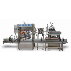 三型鋁箔感應機 + 活塞式灌裝機 + TB-90LR立式貼標機 + XG2007自動旋蓋機 + 送瓶機