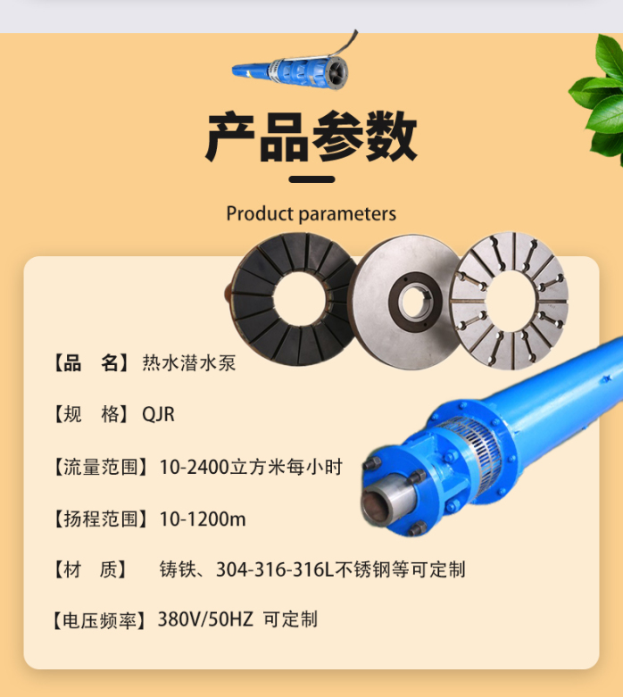主營產品:溫泉熱水高溫潛水泵、深井潛水泵,不銹鋼潛水泵,熱水潛水泵,污水潛水泵,螺旋離心泵,礦用潛水泵,潛水電機等