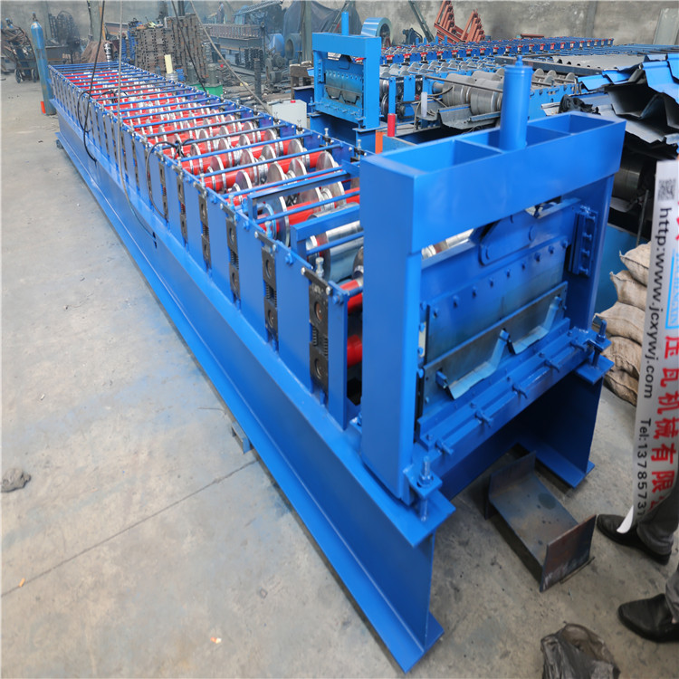 760型角馳壓瓦機技術參數:外形尺寸:11000mm*1500mm*1500mm;成型方式:輥壓成型(預壓成型);成型排數:22排;進料寬度:1000mm;中板厚度:10mm;進料板厚度:0.3-0.8mm;設備軸徑:Φ70mm(實心);主機功率:5.5KW;軋制速度:10-12m/min;機器重量:6T左右;泵站電機:3KW;設備大架:500H鋼;剪切材質:Cr12(鉻12);設備傳動:1寸鏈輪、鏈條;電器控制系統:設備采用plc工業電腦控制系統,系統包含5.7英寸臺灣臺達液晶顯示屏,中英文對照程序。 年內免費安裝調試。