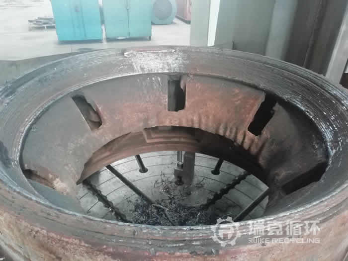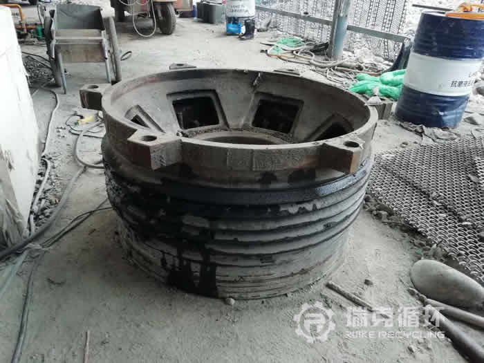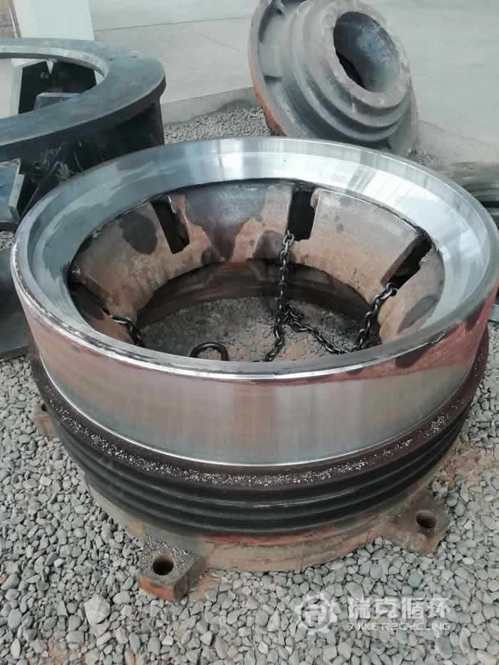 該設(shè)備使用現(xiàn)場破碎原料為河卵石,由于破碎原料比較硬,現(xiàn)場操作人員對設(shè)備使用缺乏經(jīng)驗,在軋臼壁磨損完以后沒有及時檢查更換導(dǎo)致定椎體調(diào)整套部磨損嚴重,隨后客戶與我公司銷售人員溝通說明情況,將調(diào)整套部拉回我公司,技術(shù)人員對該部件進行檢測磨損情況,出具 套維修方案: 、將磨損部位進行補焊 二、補焊完成后上立車加工至原有標準尺寸 三、技術(shù)質(zhì)檢人員對加工好的部件進行測繪檢驗是否合格。整套步驟流程逐 完成后將該部件交付給客戶重新使用。
