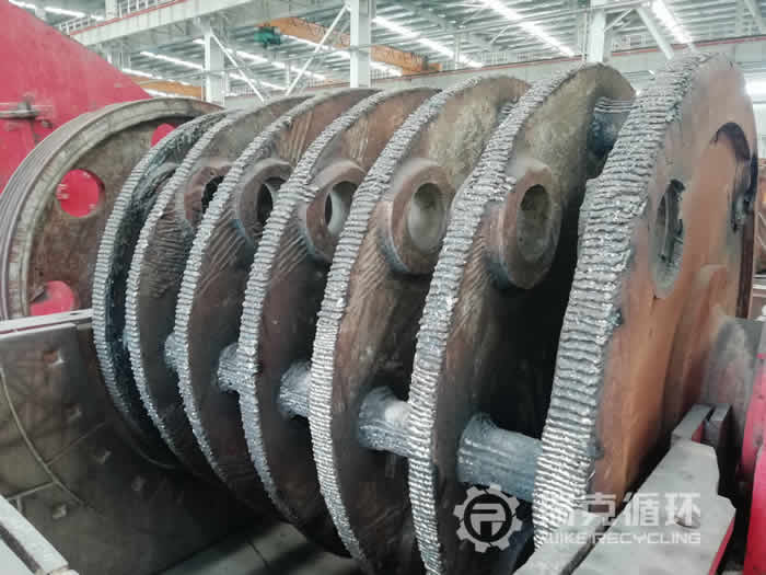 該臺設備原 是在河北某大型石料廠使用,破碎原料為石灰石,原石料廠經營管理嚴謹,對設備使用維護的較好。后因政策和環保原因,該石料廠被拆除,現場使用設備處理,我公司于2018年12月將該臺設備回收到公司后現有我公司技術人員對設備進行查看,后安排工作人員對設備進行拆解、清洗,技術部門對設備磨損程度檢測后,整理出 整套的維修方案,對轉子部進行補焊加工,軸承檢測,對磨損比較嚴重的襯板及易損件進行更換,整套維修工作完成后,再對設備進行試機檢查,然后噴漆。等待交付給客戶。